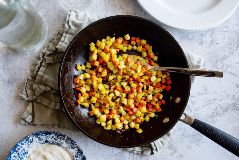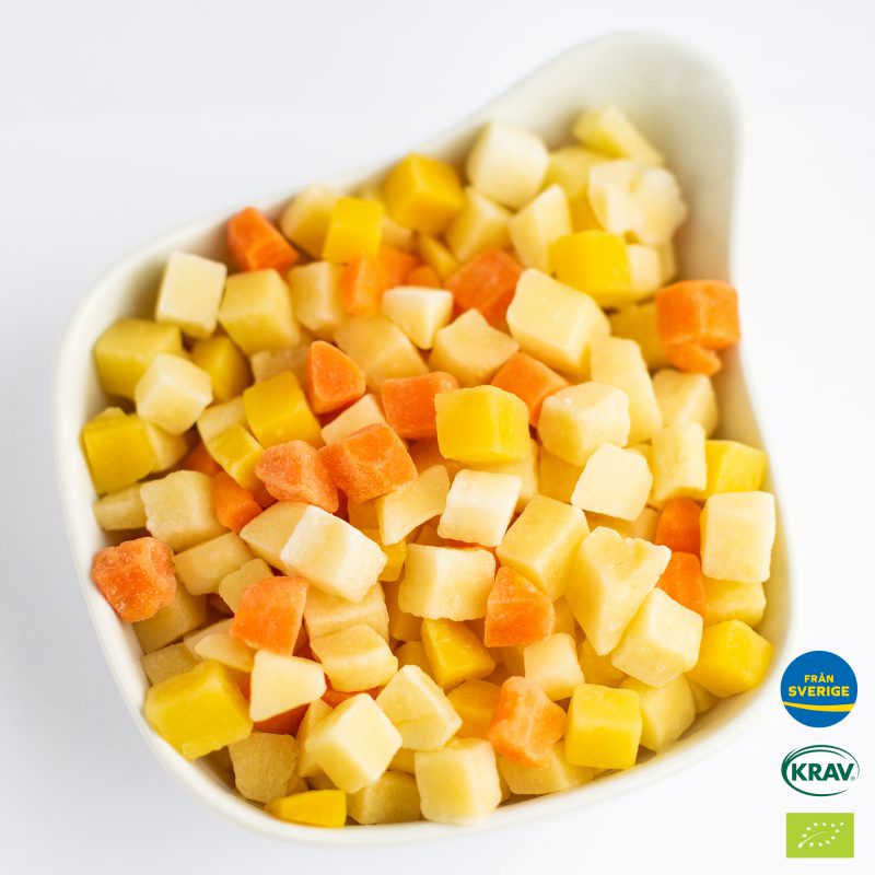 Magnihill har produceret en lækker svensk økologisk KRAV-dyrket vegetarisk pyt i pande / biksemad med rodfrugter. Vegetarisk pyt i pande indeholder ternede økologiske gulerødder, kartofler, gulebeder og pastinakker.